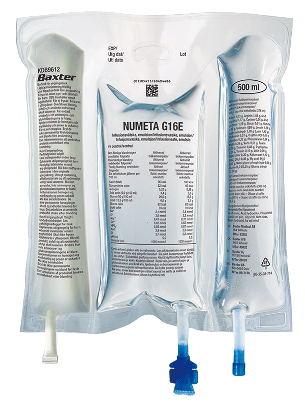 NUMETA er den eneste registrerede trekammerpose til neonatal og pædiatrisk parenteral ernæring.